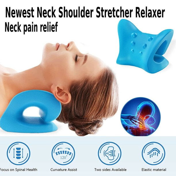 Neck And Shoulder Relaxer Cervical Traction Device For Tmj Pain Relief And Cervical Spine Alignment Chiropractic Pillow Neck Stretcher Blue Walmart Com